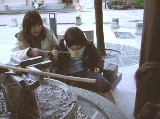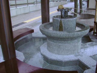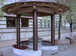 | 山中温泉の中心にある菊の湯の前に足湯があります。ここは飲湯もできます。 |
