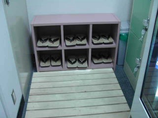 菊の湯の入り口に入ってすぐ右手に足湯専用の脱衣所があります。 中には下駄とコインロッカーが用意されています。 |