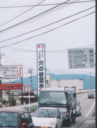 | 国道8号線を富山市方面から滑川市へ走り、上市町へ入ると、この様な大きな看板や標識が各所に有ります。 さすが、全国的に有名な穴の谷霊水だけに迷う事は無いと思います。 中部スーパー農道を立山町から滑川方向へ走り広野交差点を右折、黒川地内に入ると霊場の入り口が見えます。 |