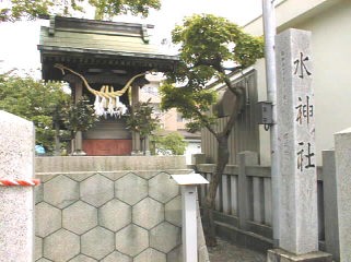 | 富山城址公園から国道41号線を北新町方面へ向かい、いたち川を渡った右手辺りが向川原町です。 いたち川の周辺にはこのように水神社があちらこちらに祀られています。 |