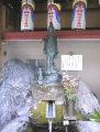 | この辺りは川べりに桜や柳の木が植えられ小さな公園として整備されている。 中央に水場があり、その上に観音菩薩、左側に不動明王が祀られている。水量も豊富で冷たい水が流れ出しています。 ベンチに座ると落ち着いた趣を見せる場所です。 |