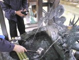 いたち川を上流へ200mほど向かった所に石倉町の延命地蔵水があります。 泉橋のたもとの延命地蔵境内にあり、ここをお参りする人々の手水として使われている。 線香がたかれた境内は掃除がゆきとどき、洗練されたたたずまいを見せている。 |