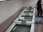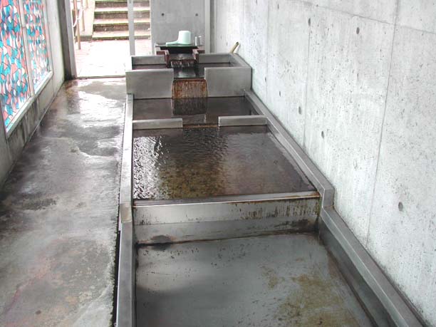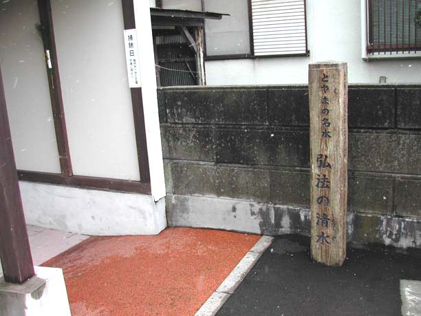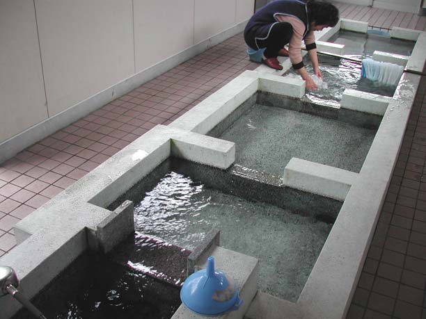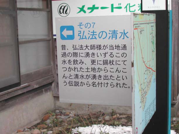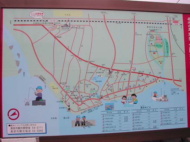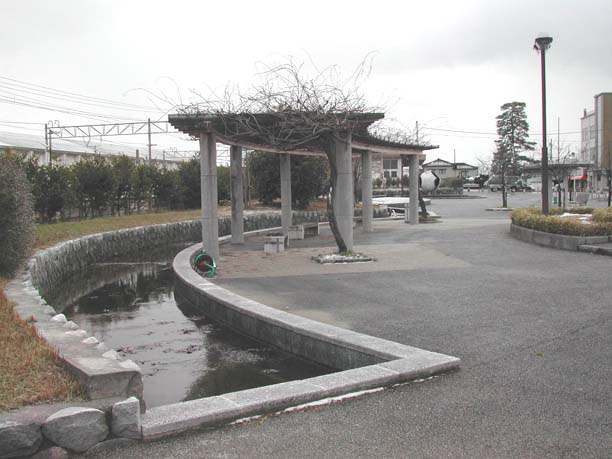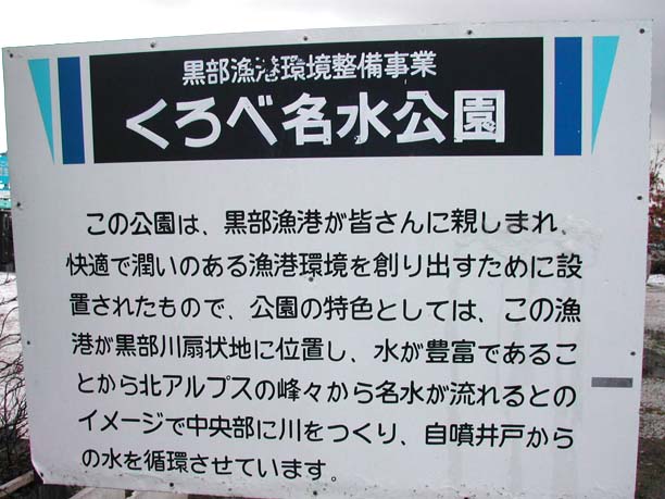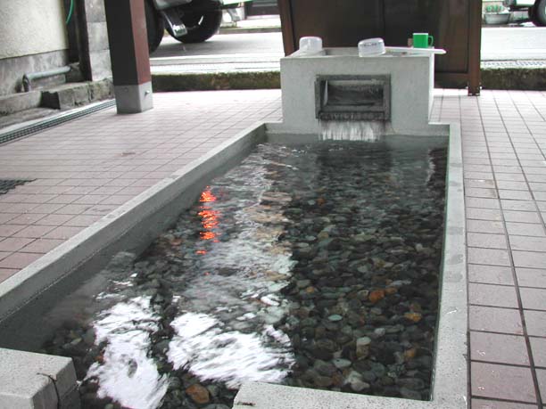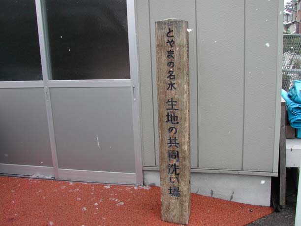 | 黒部川扇状地湧水群はJR北陸本線「生地駅」から黒部漁港の有る生地地区のいたるところに水が湧き出しています。 自噴水を使用した共同洗い場が今でも6ヶ所残っており、下手から洗い、すすぎ、飲用といったようにそれぞれの水槽に仕切り、利用している。 生地の駅前広場には「清水の里」があり、左手には黒部川扇状地湧水公苑があります。 |