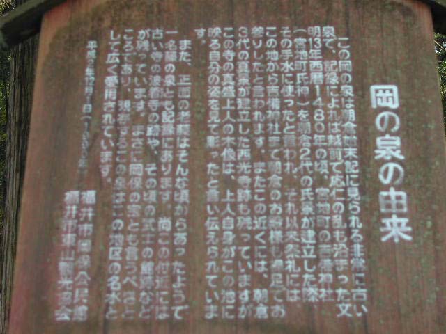 岡の水の由来です。 (写真をクリックすると大きくなります。) |