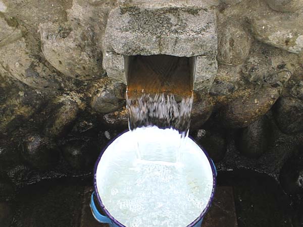水汲み場は写真のように汲みやすいように整備されています。 近所の人々も水汲みに来ている。 |