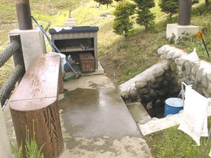 | 写真のように豊富な水が流れ出ています。 冷たく美味しい水でした。 私の感覚では少し硬い(苦いような感じ)ように感じました。 硬度は30度程で(水質検査表に書いてありました。)やはり少し高いようです。 私の舌もたいしたものです?? |