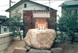 | 吉岡さん宅を守護する、すいは観音。 この水を利用して手打ちうどん店を経営されている。 |