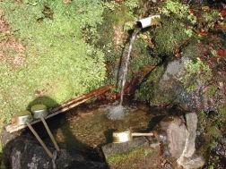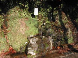 | 奥の崖の割れ目から清水が湧き出し、タンタン清水となっている。 |