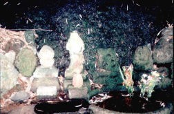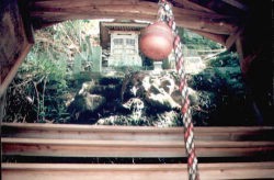 | 不動尊を祠るお堂の下に竜神が有り、口から水が落ちています。 私が訪ねた時は流量があまり多いとは言えませんでした。水源は岩の上に有る高源院の庭の湧水を引いているそうです。 |  |
