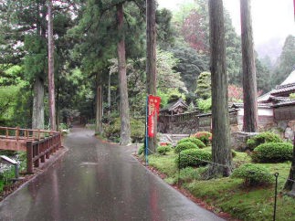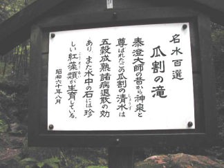 | 国道27号線を敦賀から舞鶴方面へ進み、上中駅を過ぎた辺りに名水と天徳寺の案内板があります。水はこの天徳寺の奥の森から湧き出し、小さな滝となって流れ出している。 |